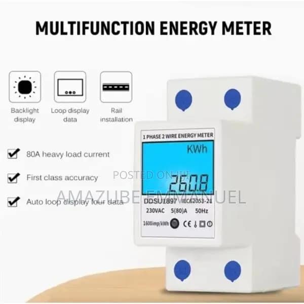 0-80A DDS662 LCD Backlight Digital Display Single Phase Electronic Energy KWh Meter This meter can be used by tenants sharing one prepaid meter to monitor the actual consumption of each tenant. Also for other energy users who want monitor their immediate and accumulated energy over time. Comes with inbuilt memory that stores energy consumption readings during power outages. The reading continues once power is restored. Features:
