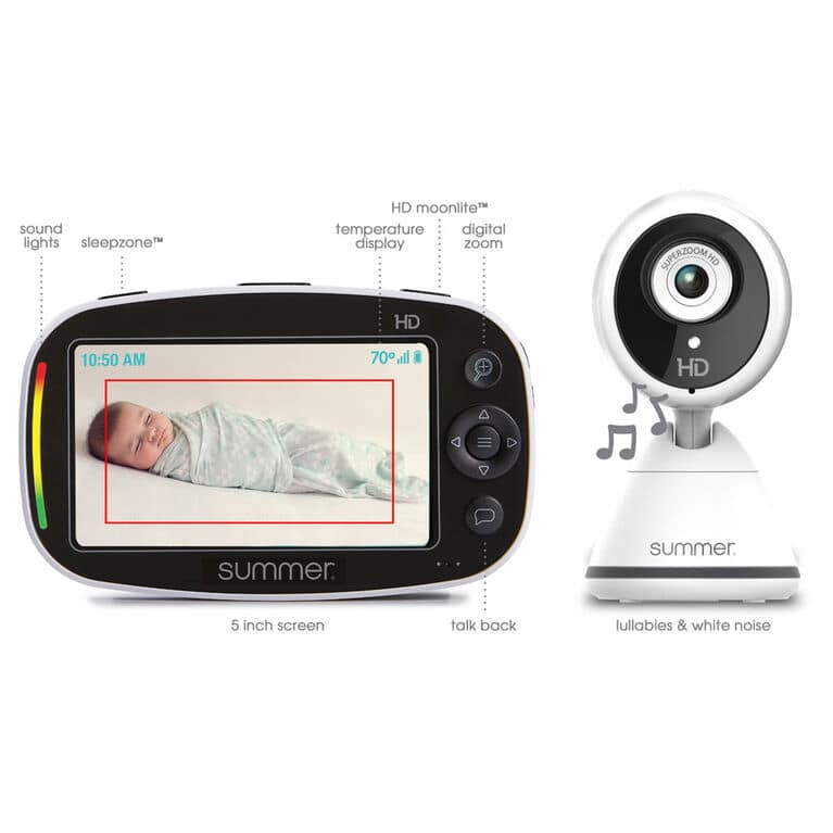 - Summer Infant Baby Pixel DUO with 2 cameras allows you to see, hear, and know your baby is okay with incredible picture quality and innovative new technology. With HD Moonlite, you can see your child in crisp HD even in the dark of night. With the six level HD zoom, you can see even the smallest movements. With SleepZone, you’ll be alerted if your child crosses the virtual boundary box. With remote camera steering and lots of convenience features, you can rest just a little easier, knowing that your baby is okay.